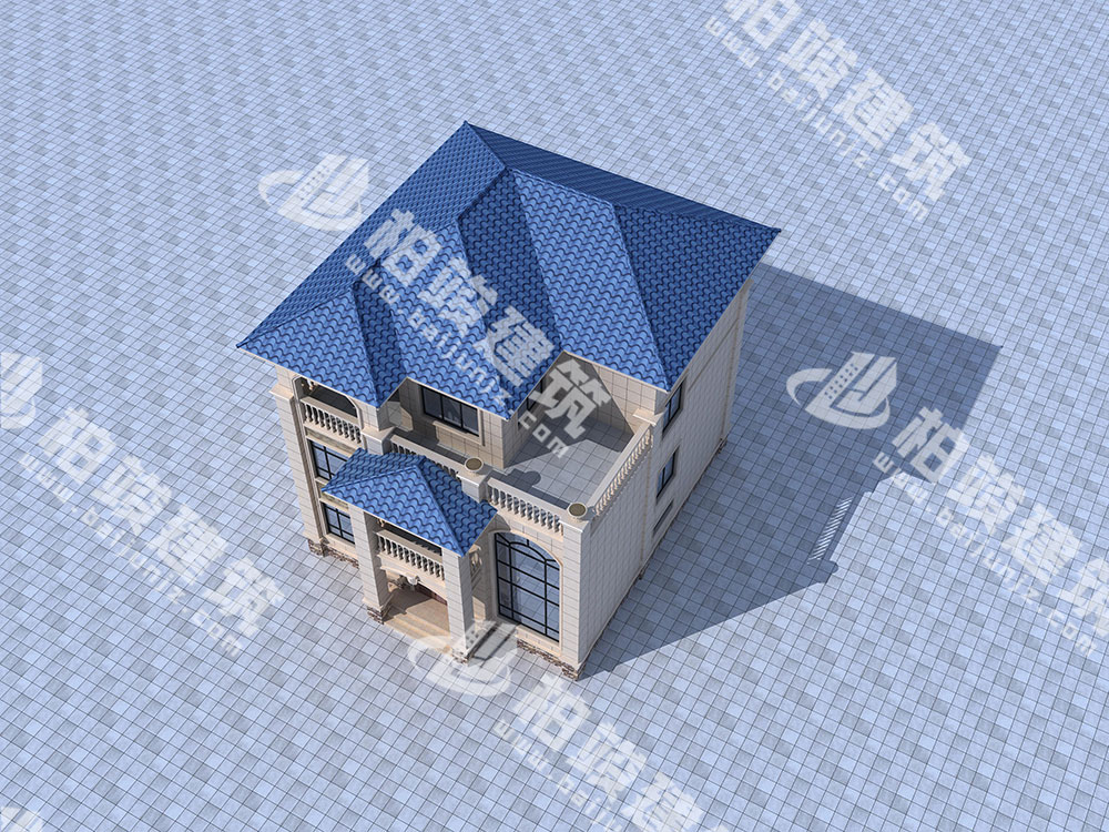 屋顶造型:蓝色釉面瓷瓦铺设坡形屋顶,流光溢彩