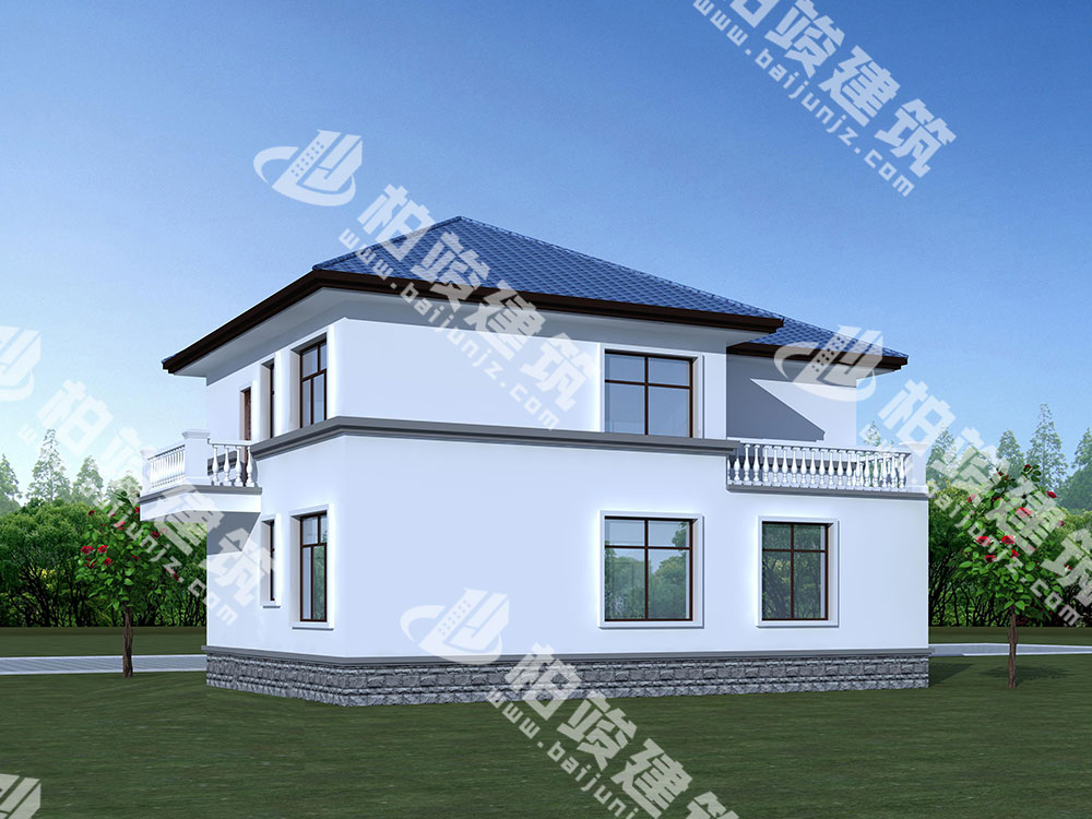 外墙涂装:大面积白色真石漆涂装墙面,搭配小范围灰色文化石,干净雅致