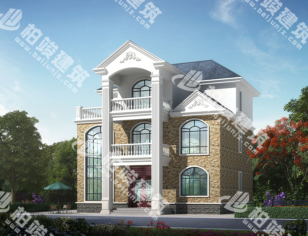 外墙装饰:檐线、花瓶型护栏、欧式立柱带来利落线条感,雕花装饰尖顶注入英式华丽