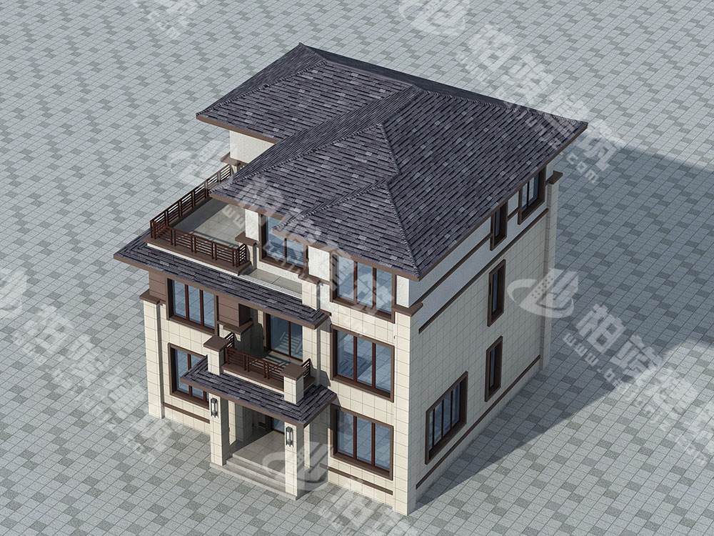 屋顶造型:沥青瓦铺设坡形屋顶,多个立面层次丰富