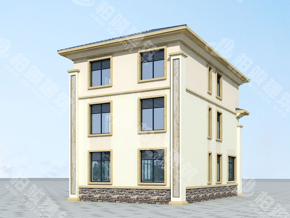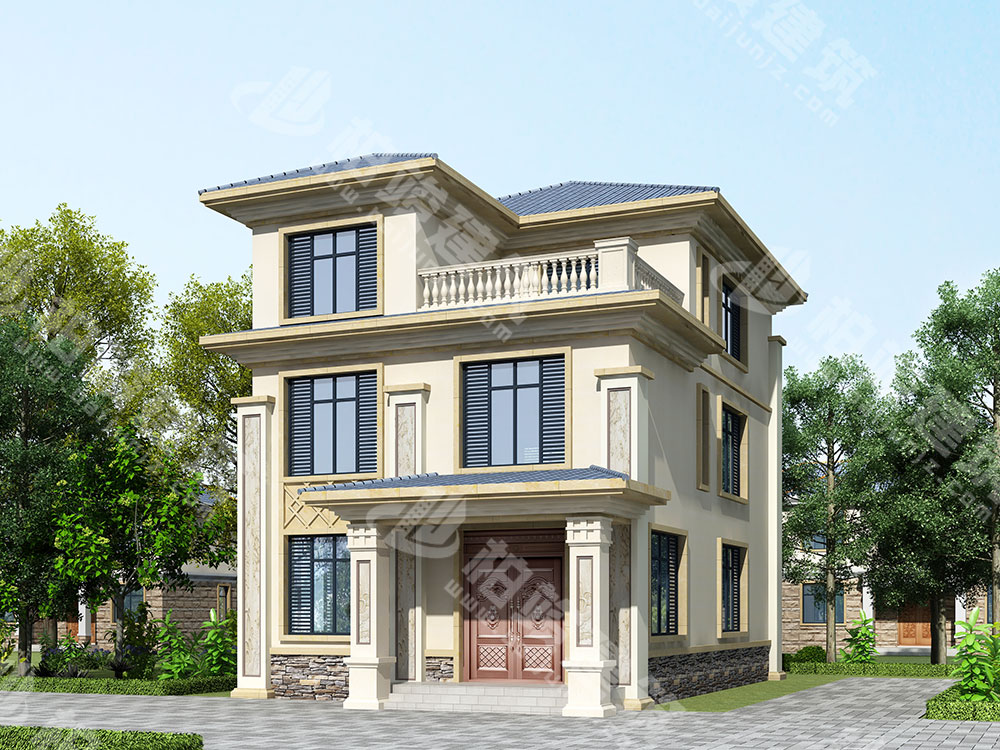 外墙涂装:米黄色真石漆全墙涂装,点缀灰棕色系文化石,营造温馨亲和的住宅氛围